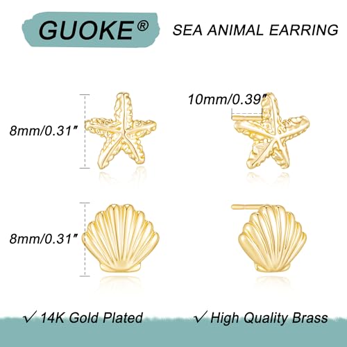 More information about Beach Starfish Earrings – 14K Gold/White Gold Plated Seafish Shell Earrings, Coastal Beachy Summer Vacation Jewelry for Women