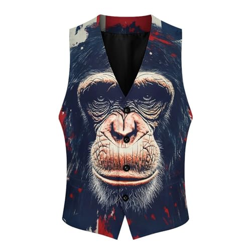 British Flag Monkey Suit Vest for Men Waistcoat Dressy V Neck Button Down Sleeveless Business Jacket Coat 3