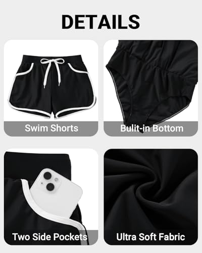 Tempt Me Women Swim Shorts with Pockets - Black Beach Boardshorts Drawstring Swim Trunks Bathing Suit Bottoms 2025 S 5