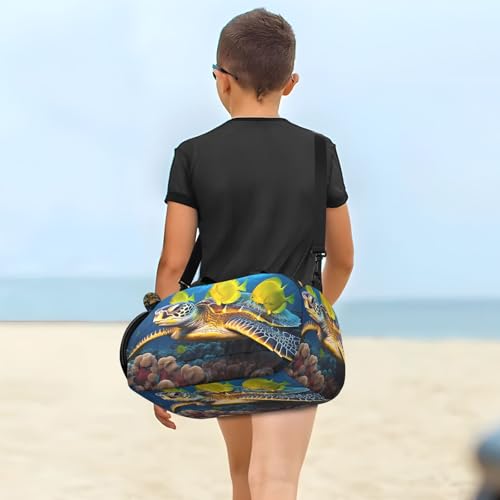 YETTASBIN Sport Travel Duffel Bag for Girls Boys, Sea Turtle Large Waterproof Weekender Overnight Bag, Detachable Shoulder Strap Gym Bag with Shoe Compartment & Wet Pocket 7