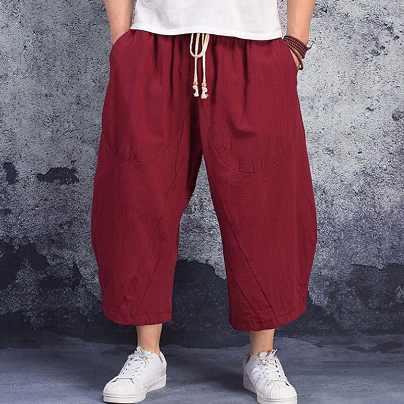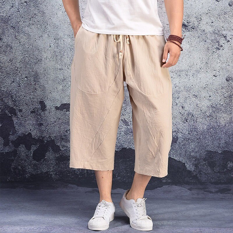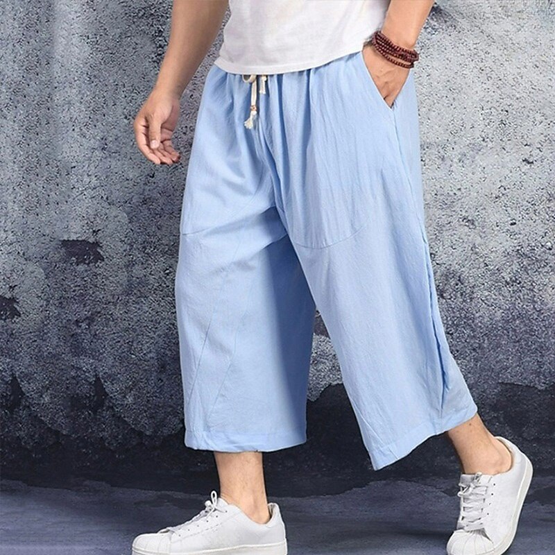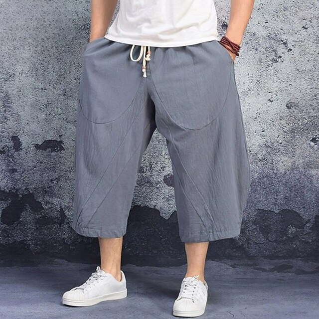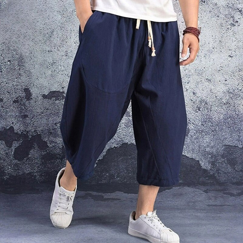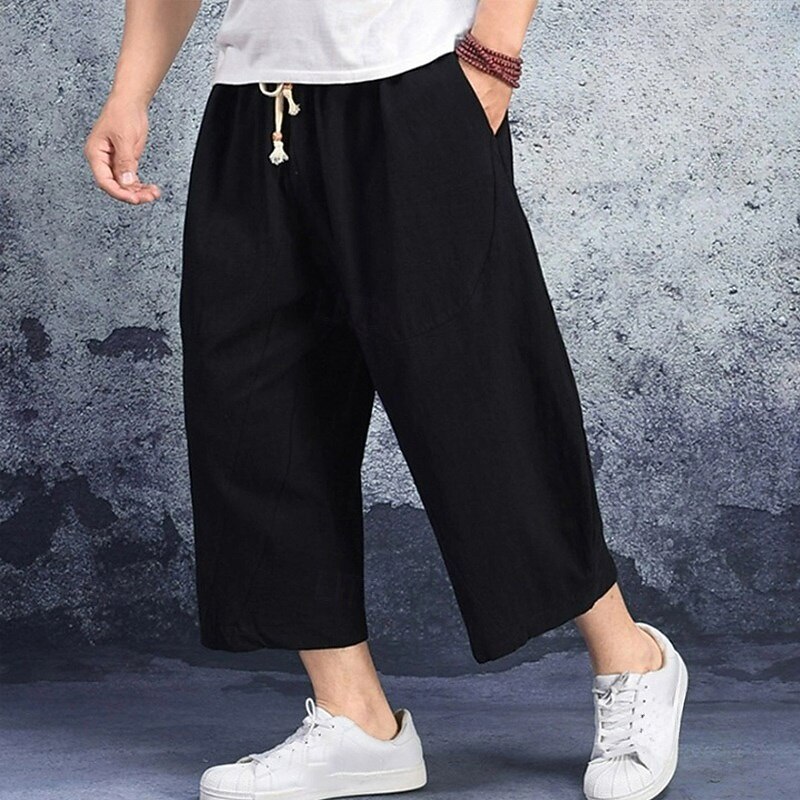 More information about Men's Linen Shorts Summer Shorts Capri Pants Pocket Drawstring Elastic Waist Plain Comfort Breathable Calf-Length Casual Holiday Going out Stylish Classic Black White