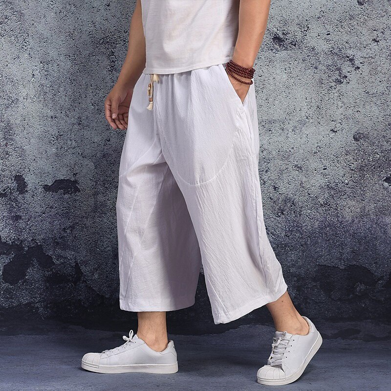 Men's Linen Shorts Summer Shorts Capri Pants Pocket Drawstring Elastic Waist Plain Comfort Breathable Calf-Length Casual Holiday Going out Stylish Classic Black White 11