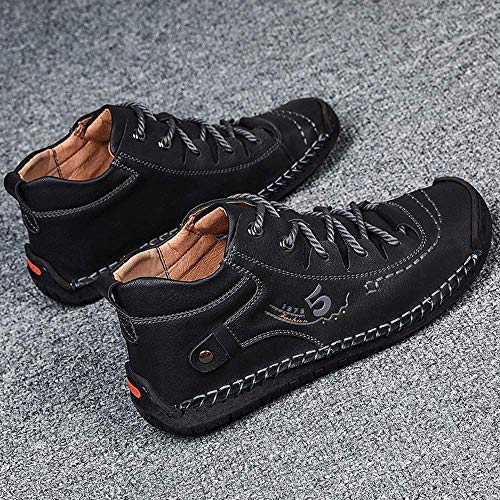 YONGJIA Mens Leather Casual Lace up Driving Walking Ankle Boots Stitching Work Fashion Shoes 6