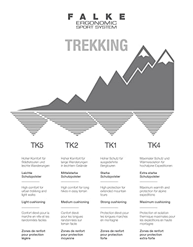 • Model number for the FALKE men's TK4 hiking socks: 16487; available in sizes: US 6.5-8.5 (EU 39-41 Ι UK 5.5-7.5), US 9-10 (EU 42-43 Ι UK 8-9), US 10.5-11.5 (EU 44-45 Ι UK 9.5-10.5), US 12.5-13.5 (EU 46-48 Ι UK 11-12.5)