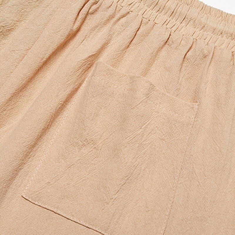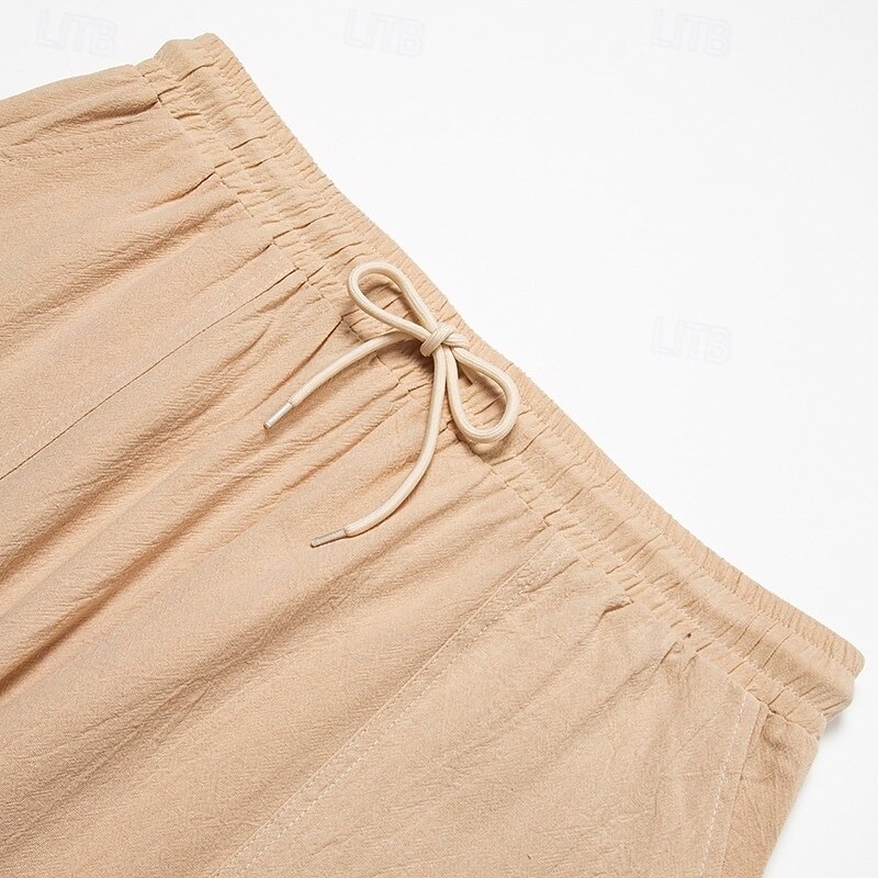Men's Capri Pants Shorts Linen Shorts Summer Shorts Beach Shorts Pocket Elastic Waist Drawstring Plain Soft Breathable Calf-Length Outdoor Sports Outdoor Casual Vacation Classic Style Khaki+Black 10