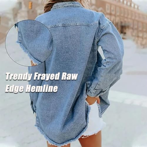 More information about Symtmetry New Washed Denim Shirt Jactet for Women, 2025 Women's Casual Denim Button Down Distressed Jacket Fall Outfits