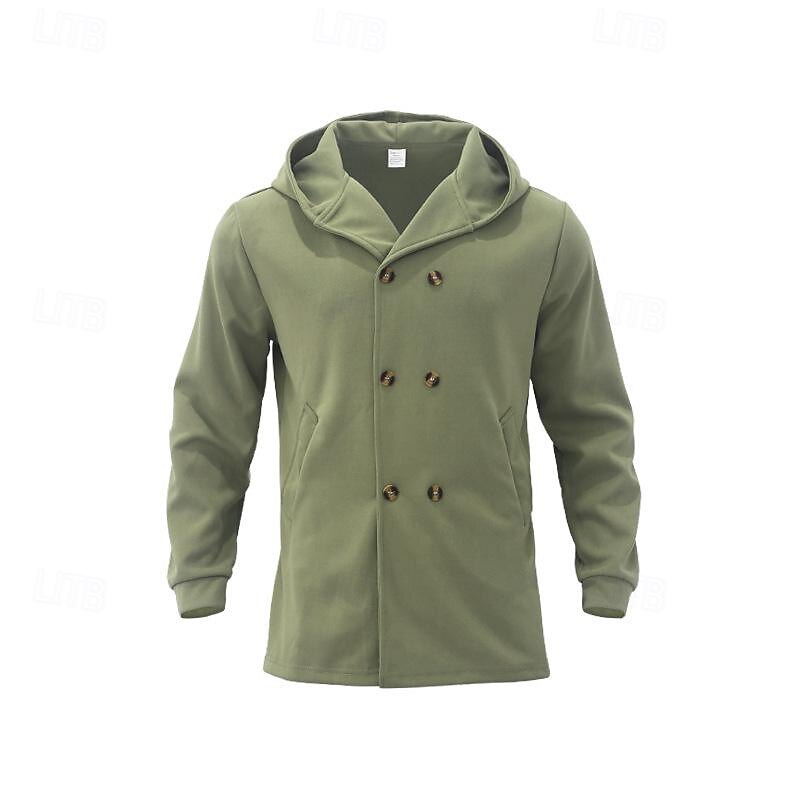 Men's Peacoat Trench Coat Daily Vacation Fall & Winter Polyester Soft Outerwear Clothing Apparel Fashion Classic Plain Pocket Hooded Double Breasted 32