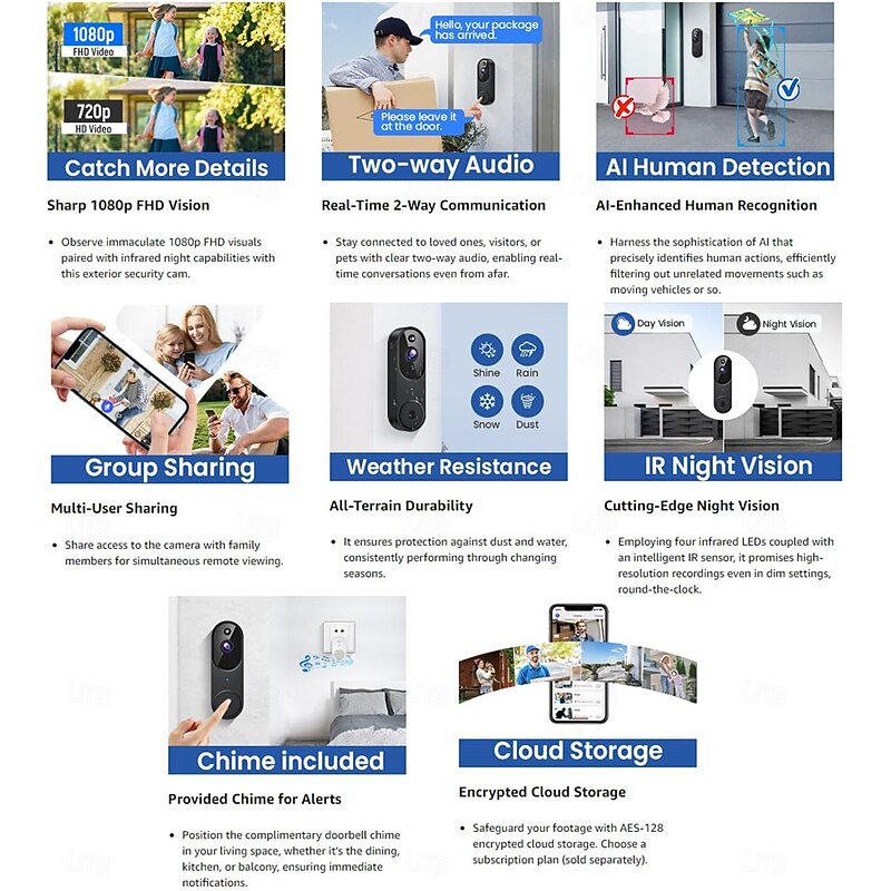 $79.99 - Smart Video Doorbell with Wireless Chime, Night Vision Camera, Two-Way Audio (T50 Beige (Including Dingdong, USB Cable)) 2025. Shop for cheap Tool Accessories online? Buy at lightinthebox.com on sale today!