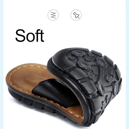 Men's Casual Leather Flats Flip Flops Comfortable Non Slip Breathable Hand Sewing Slides Summer Beach Outdoor Slip On Sandals 7