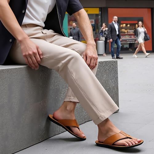 Men's Casual Leather Flats Flip Flops Comfortable Non Slip Breathable Hand Sewing Slides Summer Beach Outdoor Slip On Sandals 6