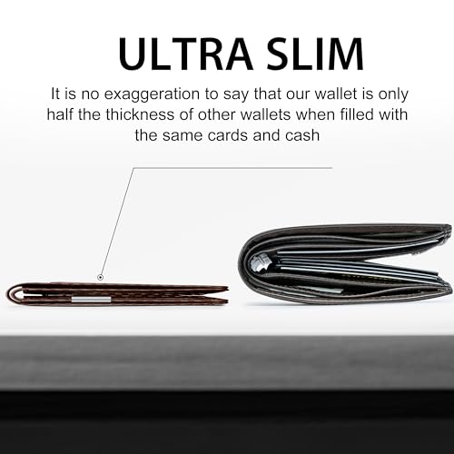 • 【CLASSIC STYLE AND SLIM DESIG】 This slim Minimalist wallet being 0.5 inches thicks, sized 4.3" x 3.1"Total of 11 available card slots. along with a detachable metal money clip.The outside notch allows you to push out the cards easily.Perfect for carrying all debit, credit and all other cards.meet your everyday needs.