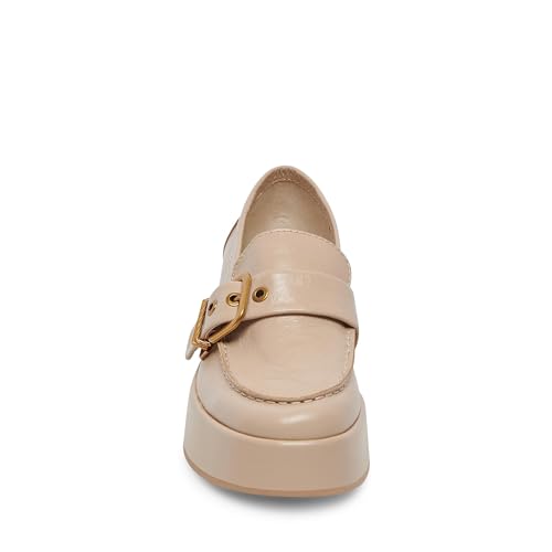 • The wide block heels give Dolce Vita Yonder Loafers the perfect poise and elevation. These round toe slip-ons have a leather upper construction with decorative buckled strap on the vamp.