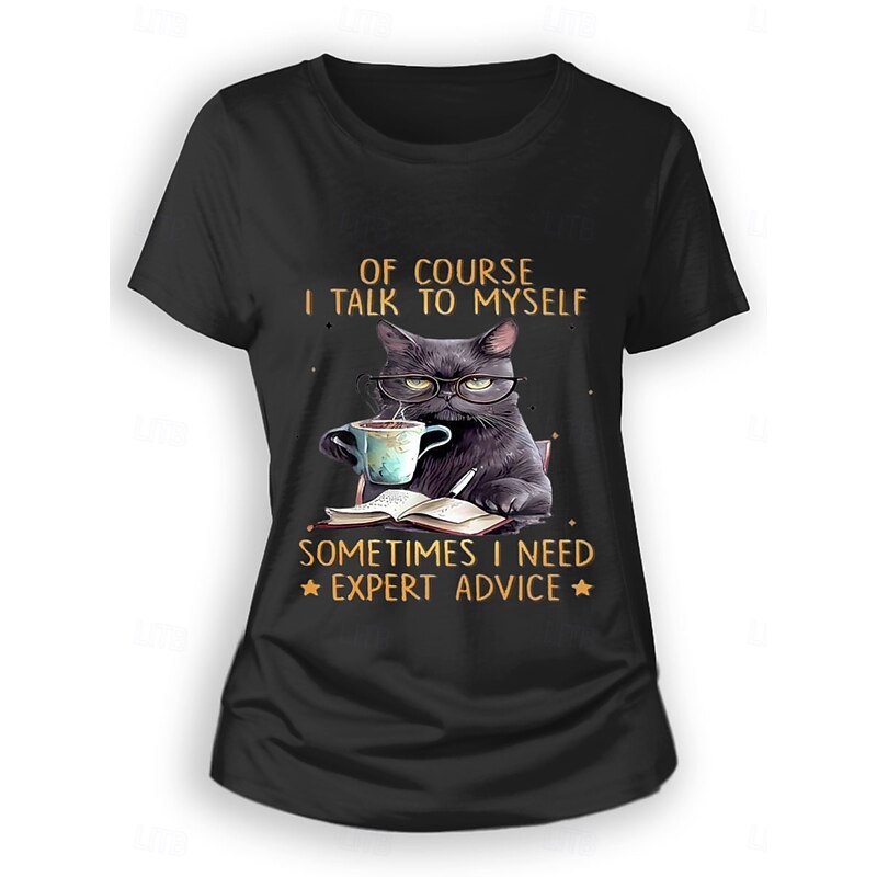 HOT ! Women's T Shirt Cat Letter Casual Short Sleeve Round Neck Regular Tops Daily Print Black Blue Green Summer