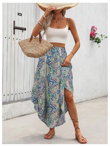 MakeMeChic Women's Boho Skirt Summer Beach Floral Flowy Long Midi Skirt 1