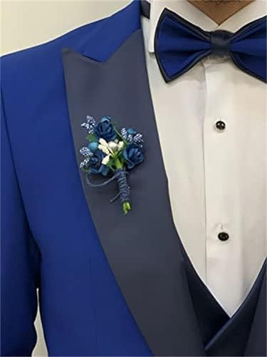• 【Unique Design】: Men Suit Design-1 suit blazer+ 1 Vest + 1 Men's Pants . Slim Fit Cut from 3d Draping. Perfect finished stitching. The solid suit jacket has one exquisite button closure, long sleeve, peak lapel, 1 chest pocket , 2 flap pockets, 4 cufflinks on each side; Double Breasted Suit Vest: 3 exquisite buttons, with back belt and real pockets; Suit Pants: flat front design. elasticated waistband, invisible zipper , 2 slash pockets and 2 back pockets with button.