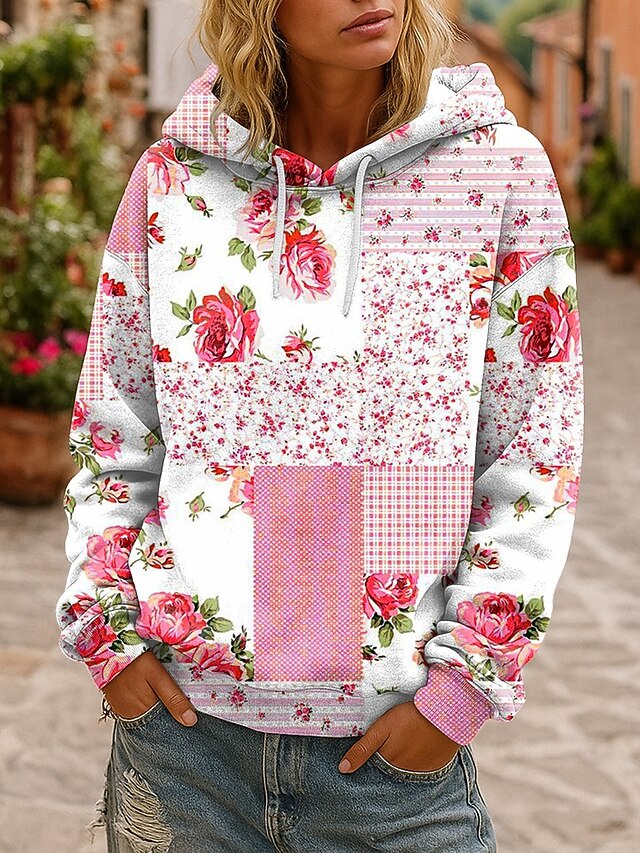 More information about Women's 3D Print Vintage Boho Hoodie Patchwork Hoodie Sweatshirt Floral s Floral Graphic Vintage Retro Casual Long Sleeve Hooded Street Casual Holiday Pink Blue Purple Green Spring Fall Winter