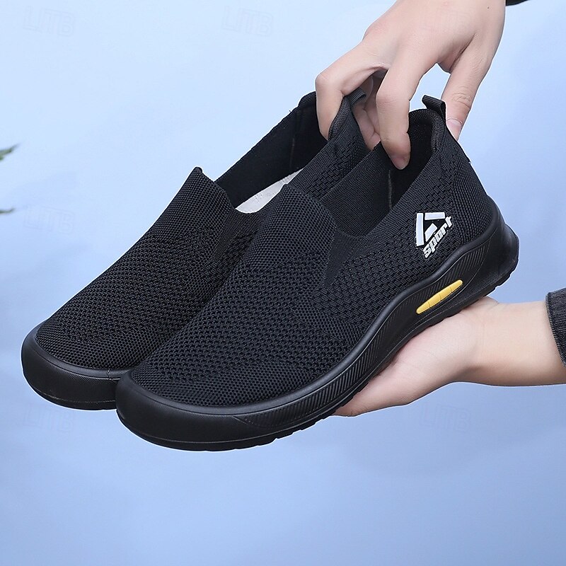 HOT ! Men's Gray Knit Slip-On Sneakers – Breathable Lightweight Walking Shoes for Daily Wear, Travel and Outdoor Activities