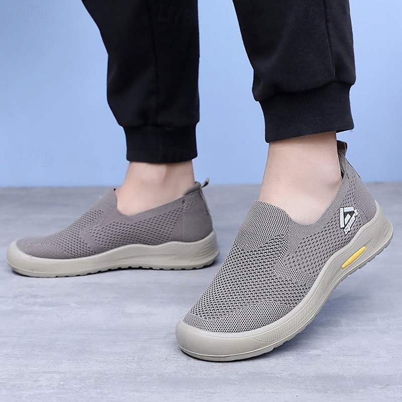 More information about Men's Gray Knit Slip-On Sneakers – Breathable Lightweight Walking Shoes for Daily Wear, Travel and Outdoor Activities