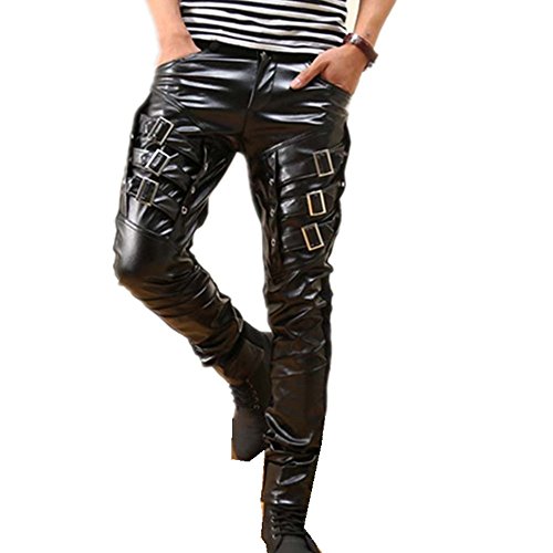 More information about Into Mens Fashion Faux Leather Punk Pants Buckles Hip Hop Leather Trousers