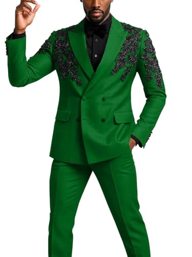 Tuxedo Suits for Men 2 Piece Double Breasted Suit Men Formal Slim Fit Blazer Pant for Wedding Prom Suit 2