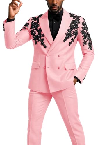 Tuxedo Suits for Men 2 Piece Double Breasted Suit Men Formal Slim Fit Blazer Pant for Wedding Prom Suit 6