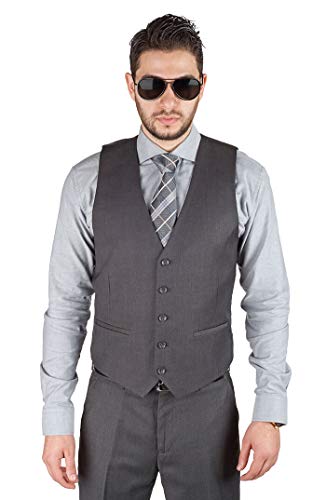 HOT ! Slim Fit 3 Piece Vested Solid Dark Charcoal Grey Suit 2 Button Notch Lapel AZAR