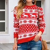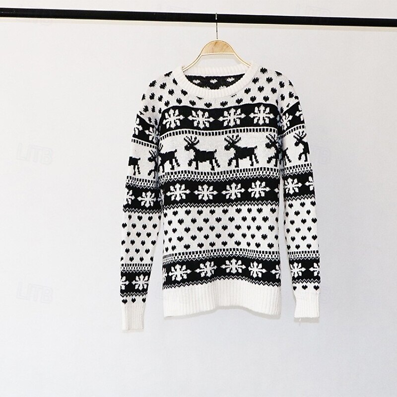 More information about Women's Christmas Sweater Fair Isle Sweater Pullover Casual Reindeer Snowflakes Ribbed Crew Neck Knitted Print Long Sleeve Regular Tops Knit Christmas Daily Holiday Black White Winter