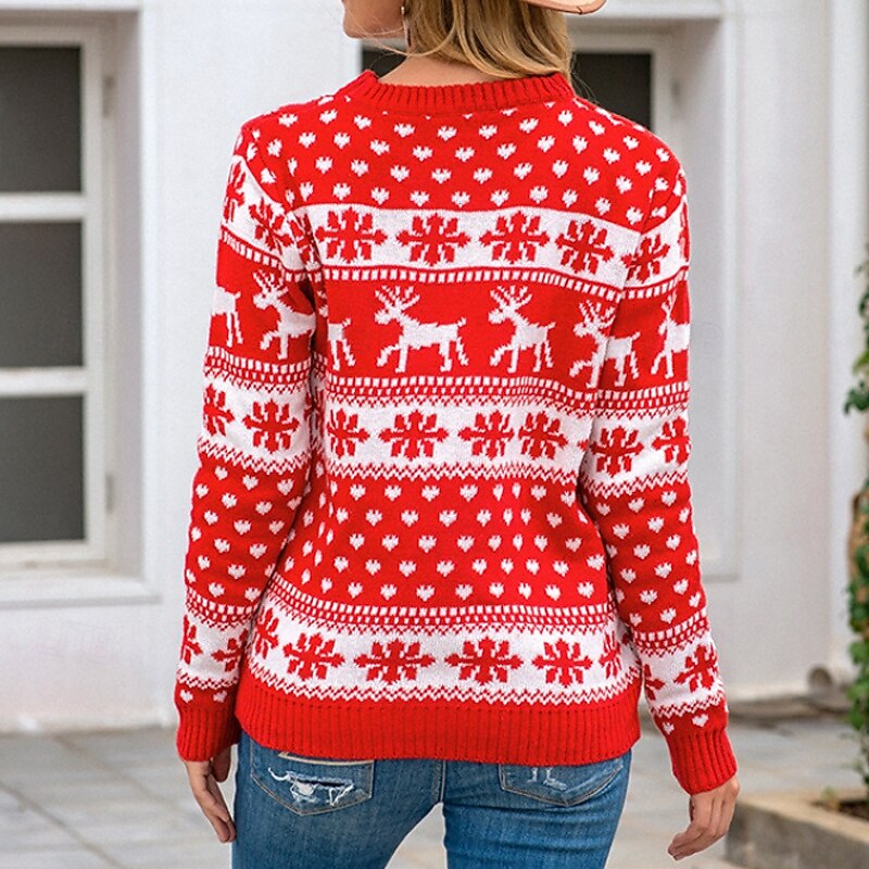 HOT ! Women's Christmas Sweater Fair Isle Sweater Pullover Casual Reindeer Snowflakes Ribbed Crew Neck Knitted Print Long Sleeve Regular Tops Knit Christmas Daily Holiday Black White Winter