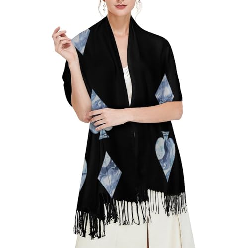 Poker Playing Card Marble Pattern Women Tassel Scarf Cashmere Long Shawl Warm Scarves Clothing Accessories 6