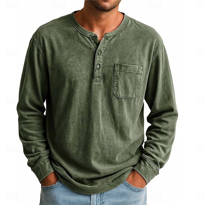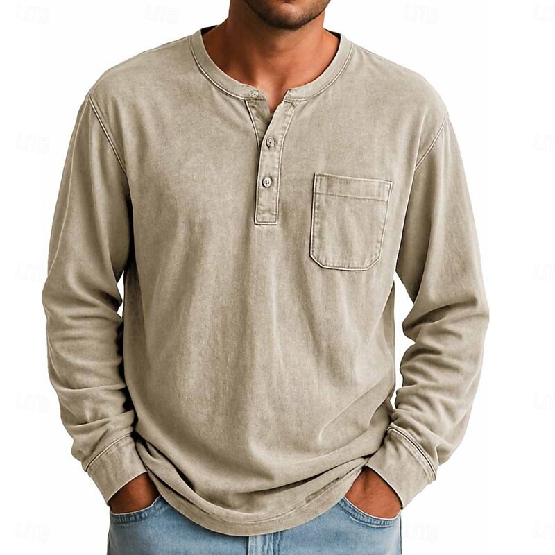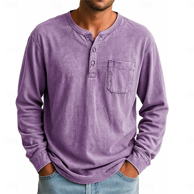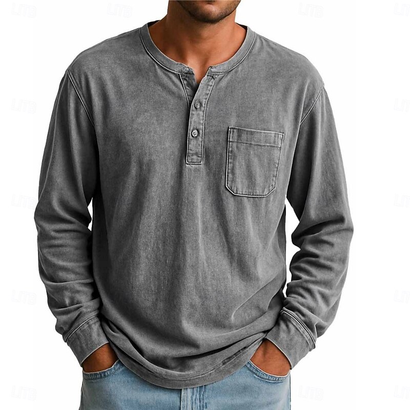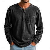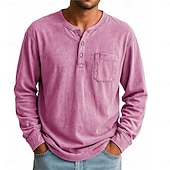 More information about Men's Henley Shirt T shirt Tee Long Sleeve Vintage Retro Vintage Casual Vintage Style Henley Casual Spring Fall All Seasons Black Pink Gray Henley T-Shirt