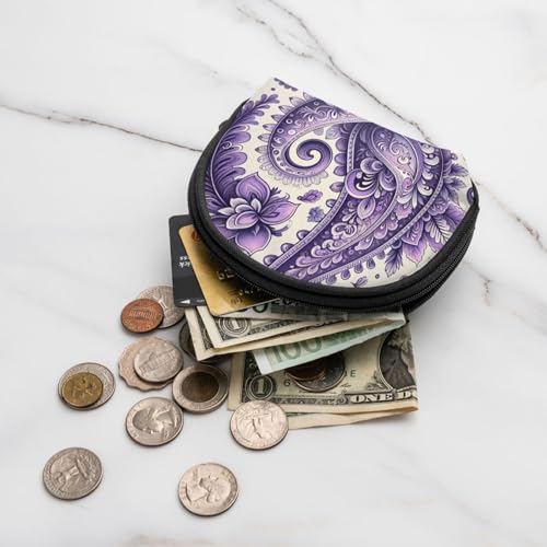 Portable Coin Purse Bohemian-Paisley-Pattern Mini Zippered Money Pouch Card Holder 6