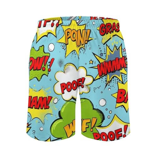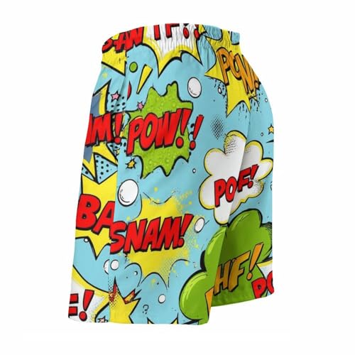 Beach Shorts for Men Comic Book Sound Effects Hawaiian Swim Board Shorts Mesh Lining Swimming Trunks Pocket L 7