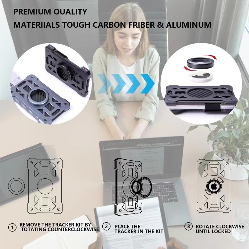 Metal Wallet for Men, RFID Blocking Slim Wallet, Minimalist Carbon Fiber Tactical Front Pocket Wallet, Money Clip Card Holder with AirTag Holder, Gift for Husband & Father 5