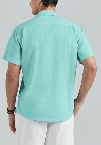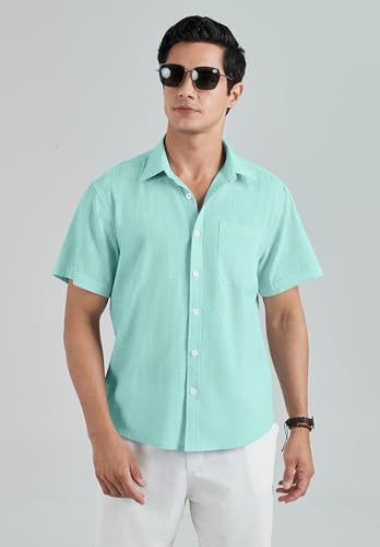 HISDERN Linen Cotton Shirts for Men Short Sleeve Casual Summer Button Down Shirt Beach Vacation Shirt with Pocket 6