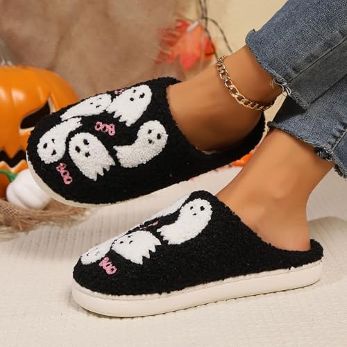Halloween Slippers for Women Men Memory Foam Cozy Plush Fluffy Warm Cartoon Fuzzy Slippers Winter Holiday Slip-on Slides Comfortable Soft Indoor Outdoor House Shoes 6