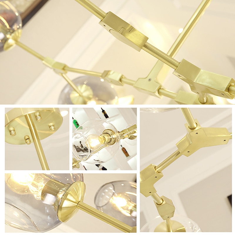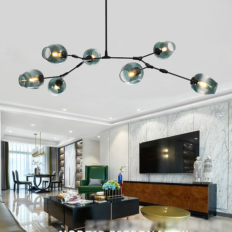 More information about Multi Heads Magic Bean Chandelier Warm White Light Creative Art Modern Living Room Lamp Heteromorphic Nordic Simple Molecular Glass Ball Dining Room AC110V AC220V