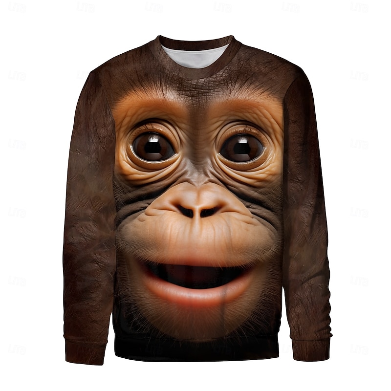 Highlights [Fabric] : Crafted from high-quality polyester, this sweatshirt offers comfort and durability with a micro-elastic finish. The material provides softness against the skin, making it suitable for daily wear. [Fit] : Featuring a form fit design, this sweatshirt is tailored to provide a snug yet comfortable wear. It includes ribbed sleeves and hem, which add a classic sweatshirt touch and ensure a close fit for added warmth. [Design Highlights] : The sweatshirt stands out with its photorealistic graphic print of a smiling orangutan, adding a playful and unique element to your wardrobe. The hooded neckline offers additional protection against the cold, while the fleece lining provides warmth during cooler months. [Occasions] : Ideal for outdoor sports, vacations, and casual outings, this versatile piece brings a fun twist to your everyday style. Whether you're heading out for a relaxed evening or an adventure-filled day, this sweatshirt complements a variety of occasions with its cool and casual vibe. [Size Range] : Available in a wide range of sizes from S to 3XL, this sweatshirt accommodates a variety of body types, ensuring a perfect fit for everyone.