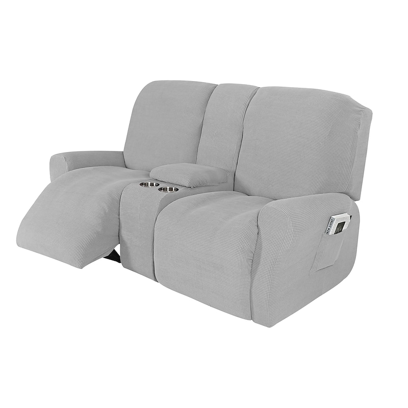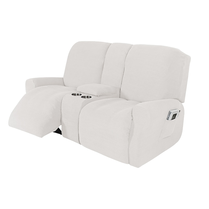 Stretch Recliner Covers Burgundy Loveseat with Middle Console Slipcover Recliner Loveseat Sofa Cover with Side Pocket(3 Armrest Cover,3 Backrest,2 Seat Cover)