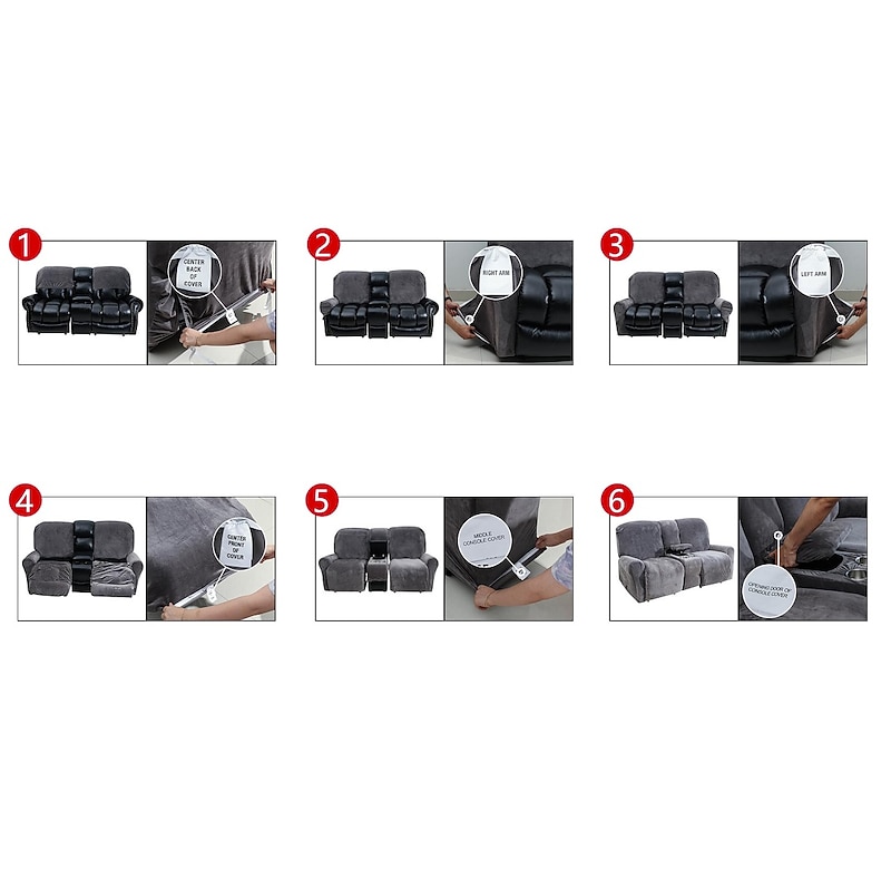 More information about Stretch Recliner Covers Burgundy Loveseat with Middle Console Slipcover Recliner Loveseat Sofa Cover with Side Pocket(3 Armrest Cover,3 Backrest,2 Seat Cover)