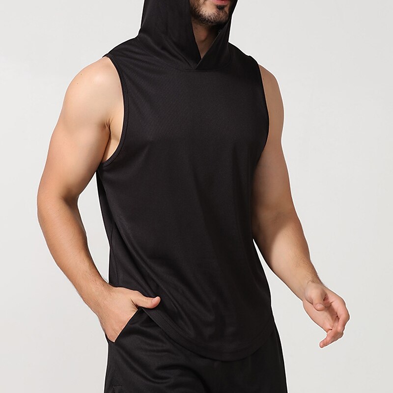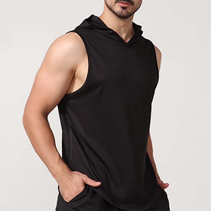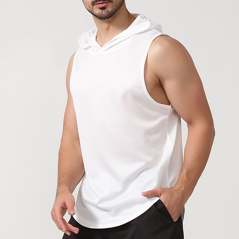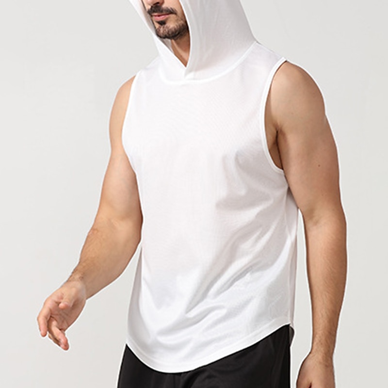 Men's Men Tops Tank Sleeveless Hoodie Hooded Sleeveless Sports & Outdoor Vacation Going out Casual Daily Gym Quick dry Breathable Soft Plain Black White Activewear Fashion Sport 11