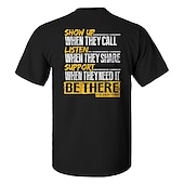 Highlights [Fabric] : Crafted from a high-quality cotton blend, this men's t-shirt offers a soft and breathable experience, ensuring comfort throughout the day. The use of durable materials makes it a reliable choice for everyday wear. [Fit] : Featuring a classic crewneck design and regular fit, this t-shirt effortlessly suits a variety of body types, enhancing its appeal among men who appreciate a balance of comfort and style. Its short sleeves add to the laid-back aesthetic. [Design Highlights] : The standout feature of this t-shirt is its bold, motivational quote printed in striking white and yellow letters on the back. The black or dark blue backdrop provides a dramatic contrast that makes the message highly visible, encouraging a spirit of community and support. [Occasions] : Perfect for casual outings, outdoor activities, or sports events, this t-shirt is a versatile addition to any wardrobe. Whether you're going out for a relaxed day with friends or enjoying an active lifestyle, this piece promises both style and functionality. [Size Range] : Available in a wide range of sizes from L to 5XL, catering specifically to plus size and big & tall men, this t-shirt ensures all customers can find their ideal fit.