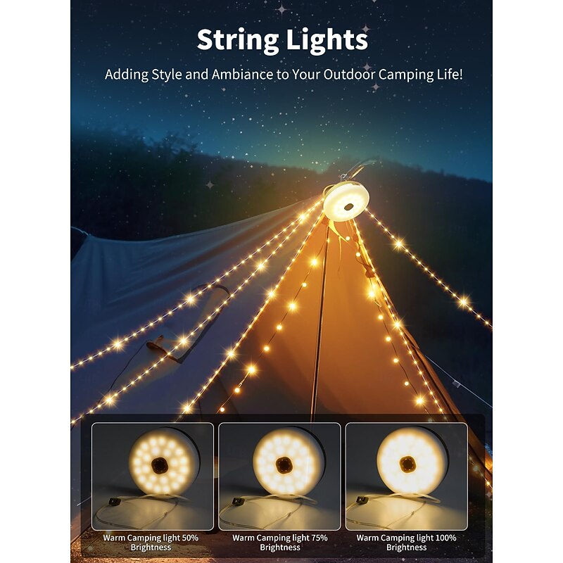 $31.99 - 1 Pc10m/33ft Outdoor Solar Waterproof Camping Light String Lights For Convenient Storage for Halloween, Color Light Warm Light Infinite Dimming Tent Canopy Decoration Lighting Remote Control 2025. Shop for cheap Solar String Lights online? Buy at lightinthebox.com on sale today!