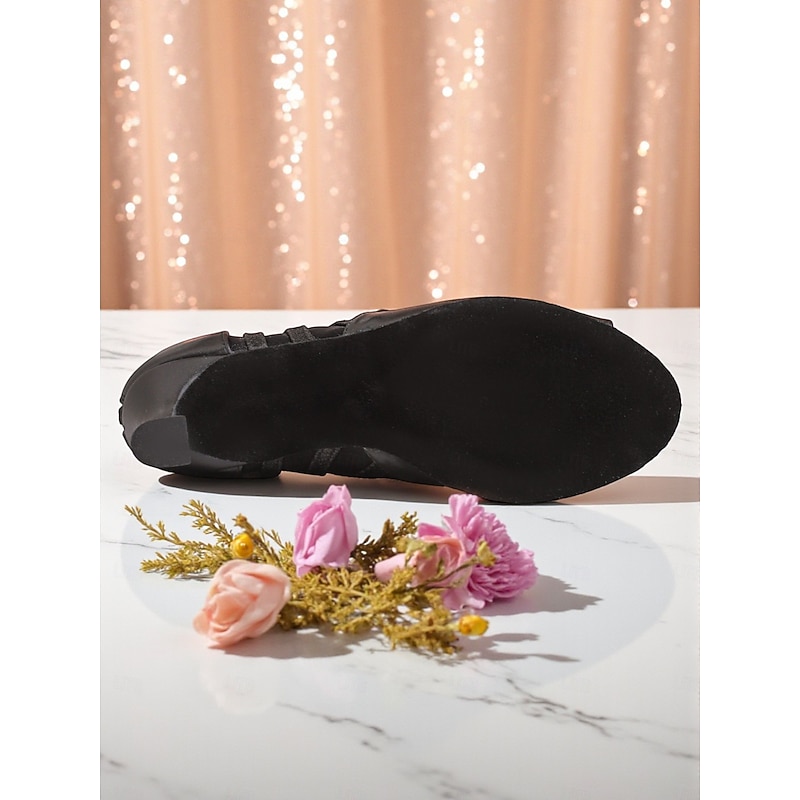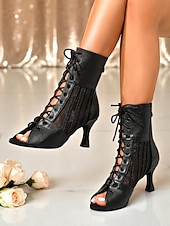 HOT ! Women's Black Lace-Up Peep Toe Ankle Boots, Mesh High Heel Dance Shoes for Evening Gala, Prom & Party Outfits