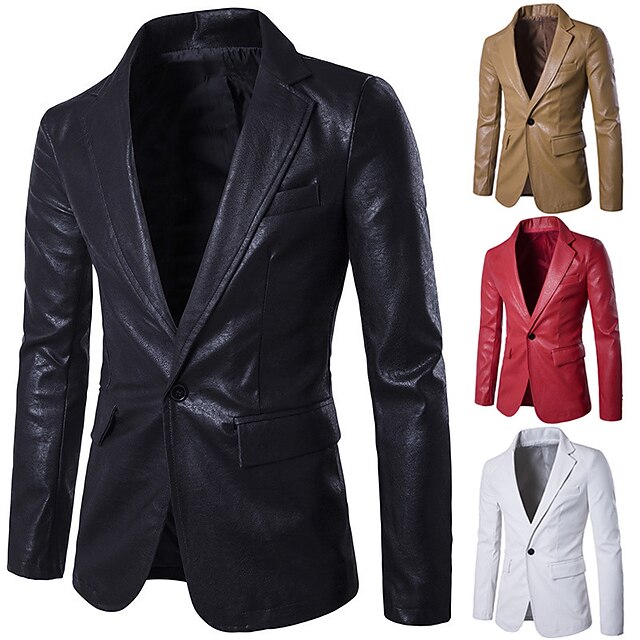 Men's Jacket Faux Leather Jacket Blazer Wedding Business Thermal Warm Rain Waterproof Pocket Fall Solid Color Business Elegant Turndown Regular Faux Leather Regular Fit Black White Red Khaki Jacket 20