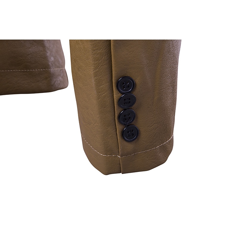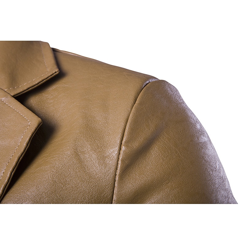 More information about Men's Jacket Faux Leather Jacket Blazer Wedding Business Thermal Warm Rain Waterproof Pocket Fall Solid Color Business Elegant Turndown Regular Faux Leather Regular Fit Black White Red Khaki Jacket