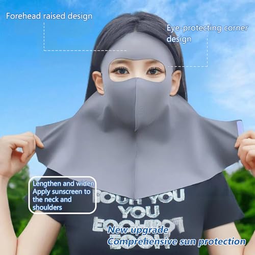 HOT ! PROUDDEMON UPF 50+ Ice Silk Cooling UV Face Mask Unisex - Breathable Sun Protection Balaclava for Outdoor Sports(Grey)