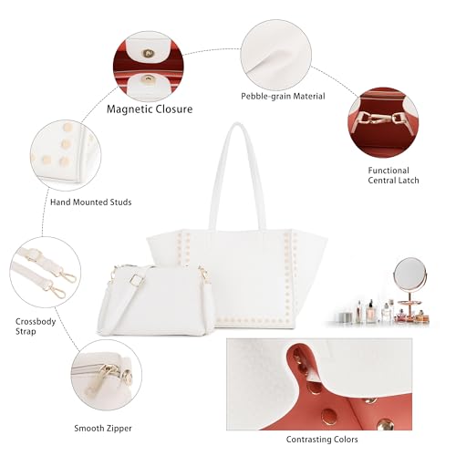 HOT ! Shoulder Bag for Women Vegan Leather Studded Bag Large Trendy Tote Bag with Crossbody Purse 2PCs Set