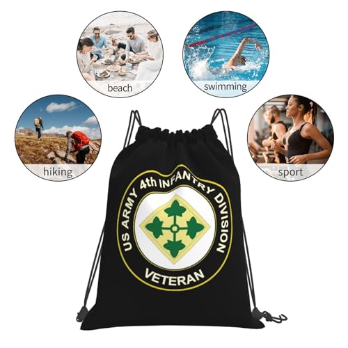 Rqwaaed US 4th Infantry Division Veteran Versatile Drawstring Gym Bag Perfect Workouts Daily Essentials 5