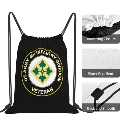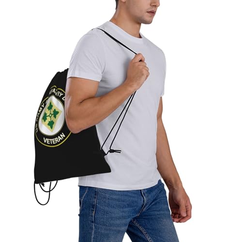 Rqwaaed US 4th Infantry Division Veteran Versatile Drawstring Gym Bag Perfect Workouts Daily Essentials 4