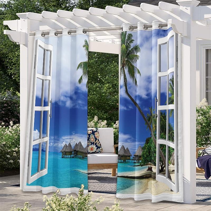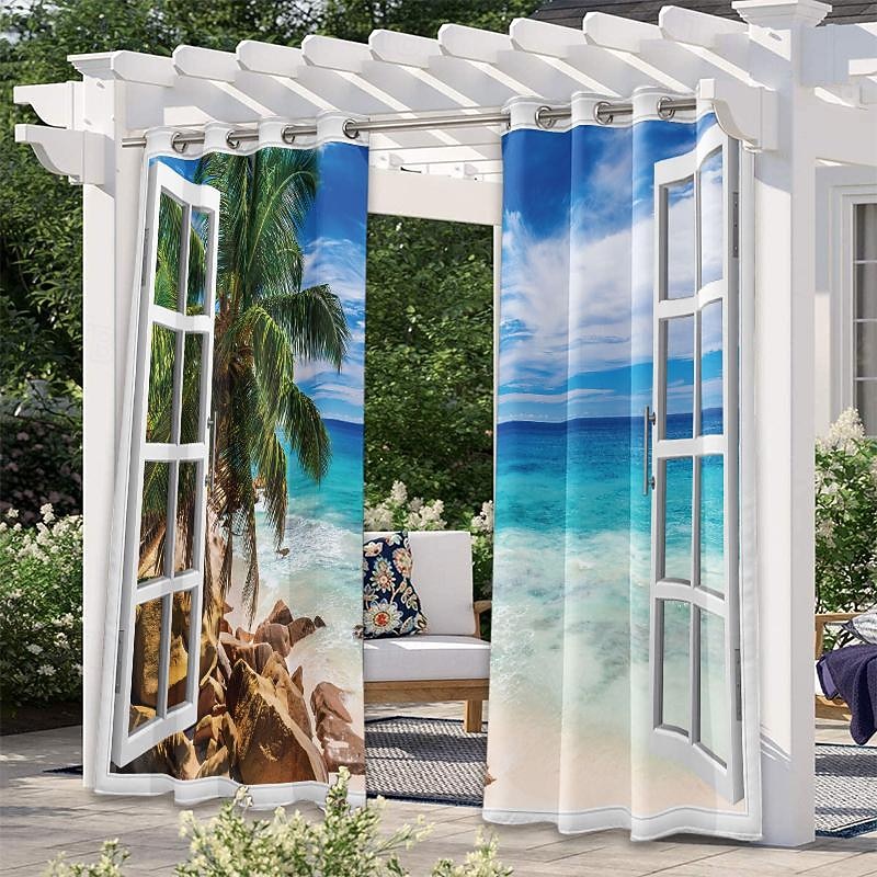 $33.99 - Outdoor Curtains Waterproof Windproof Weatherproof Curtain for Patio, Cabana, Porch, Pergola and Gazebo, Grommet Top Drape, 2 Panels Beach Palm 2025. Shop for cheap Waterproof Curtains online? Buy at lightinthebox.com on sale today!